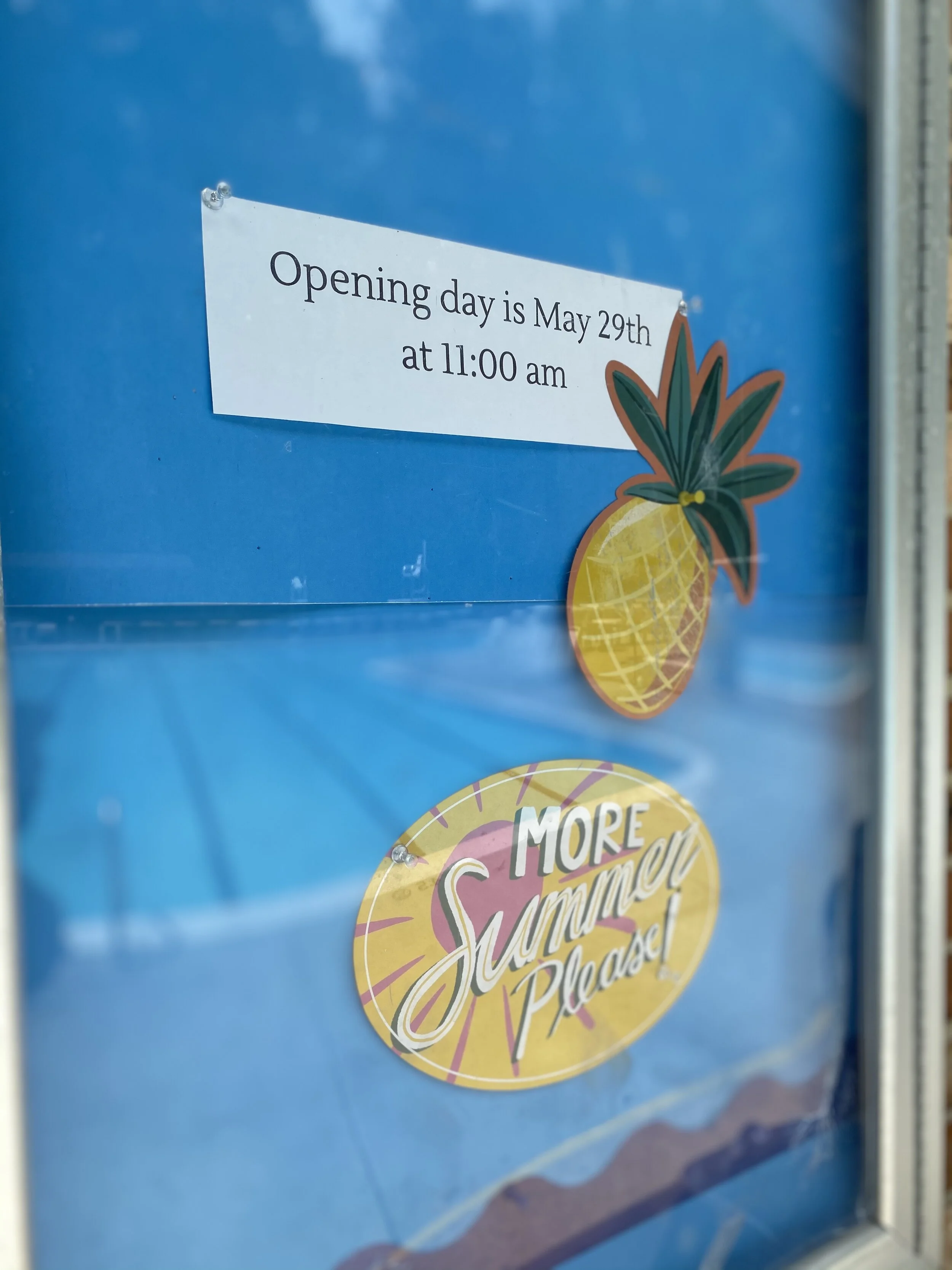 The pool plans to open at 11:00 am Saturday, May 29th. We look forward to seeing you there!